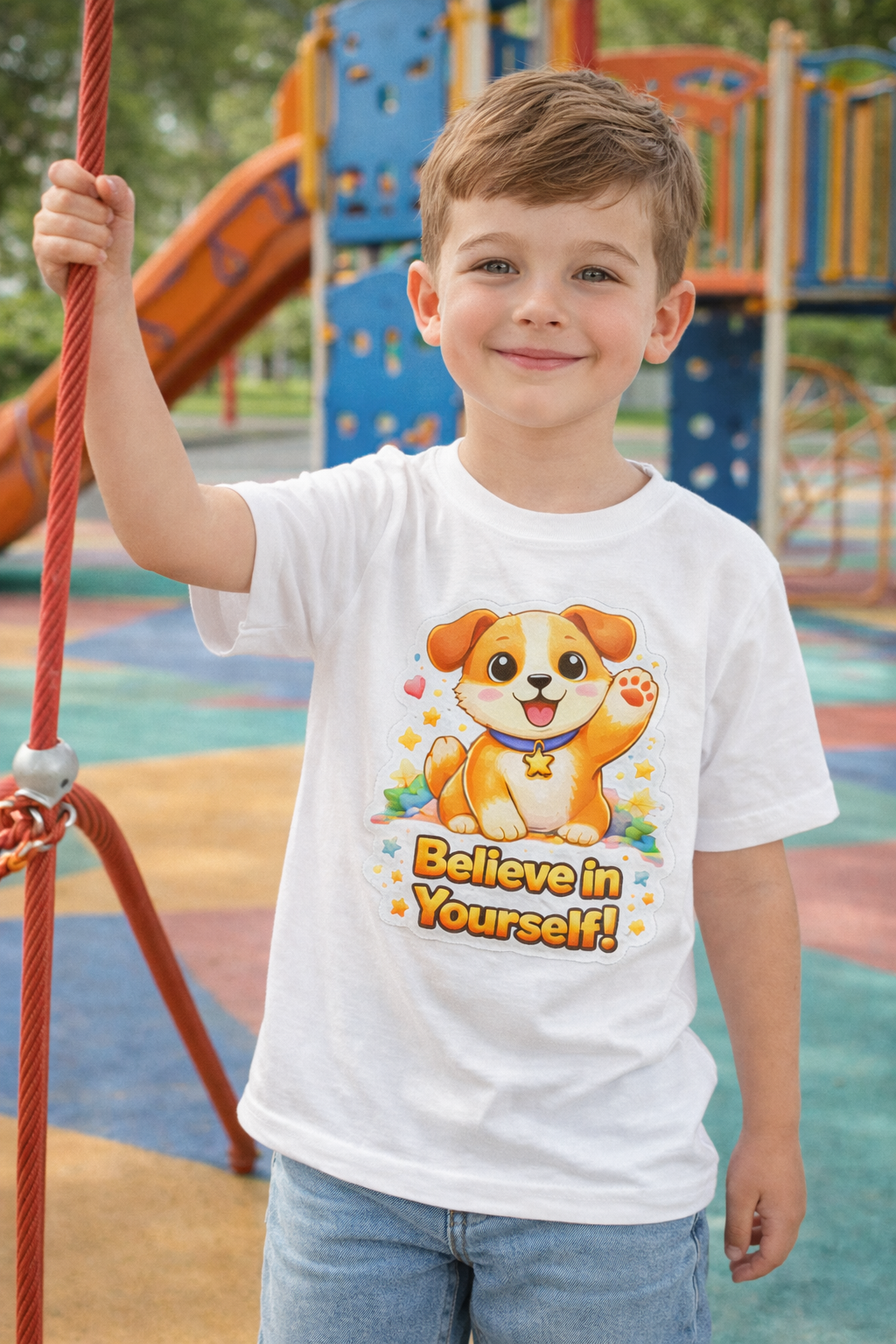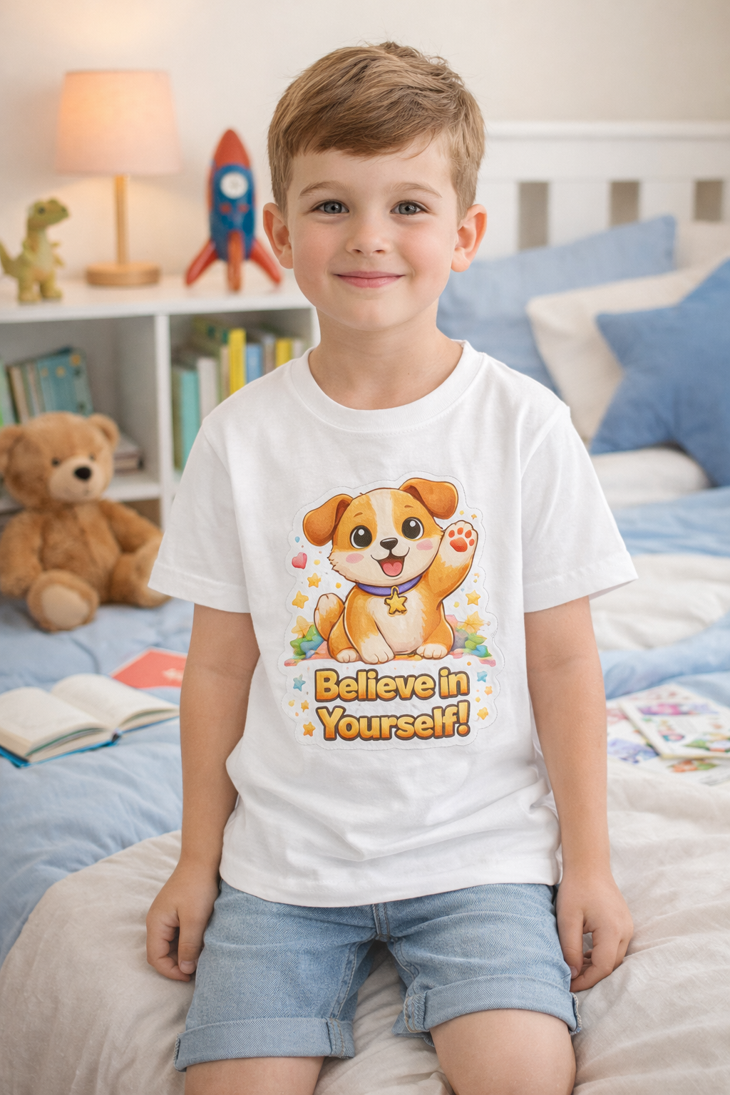 A cheerful puppy with a big smile and an even bigger message. Bright, playful, and full of encouragement—perfect for kids’ rooms, nurseries, or everyday positivity.